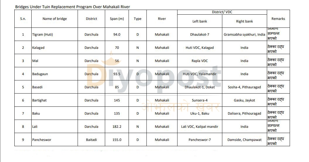 भारतले अवराेध गरेकाे ठेक्का तुइन हटाउने याेजनाकाे सुची