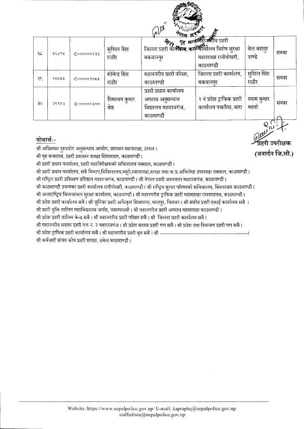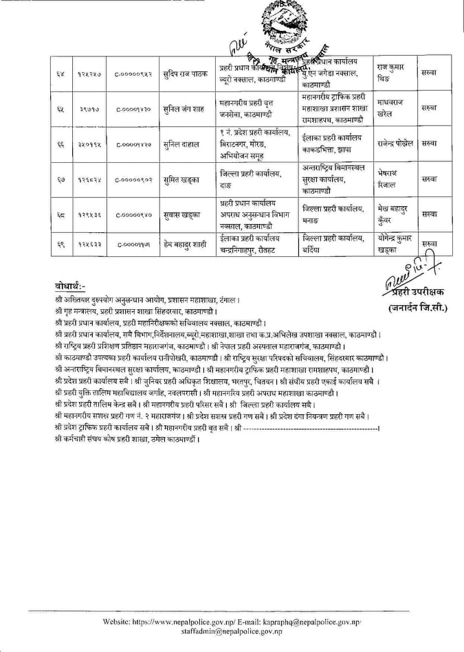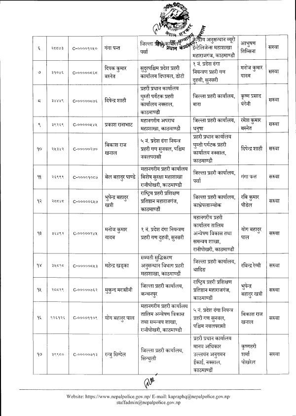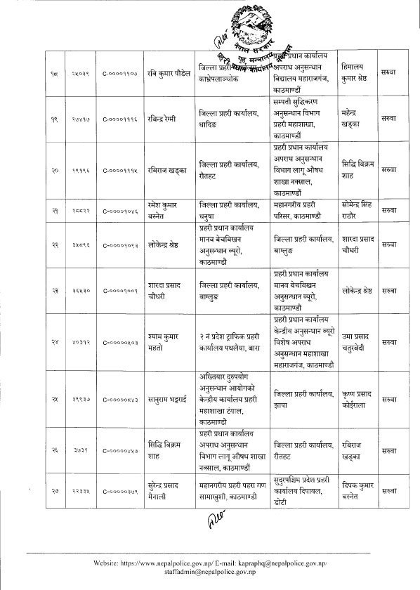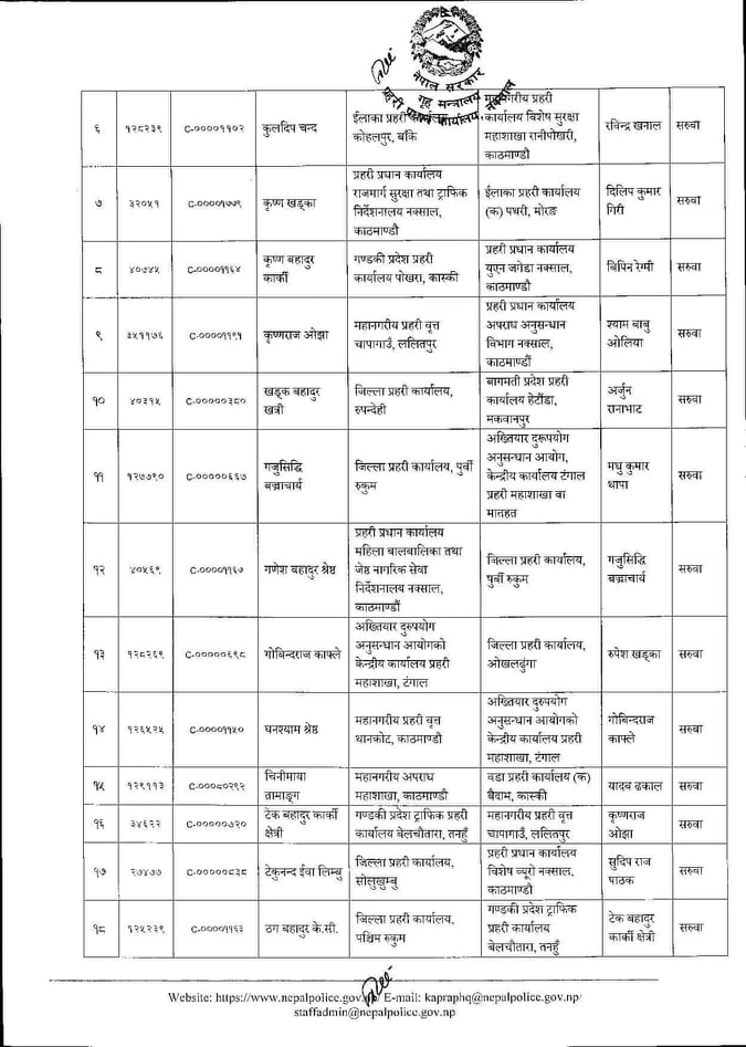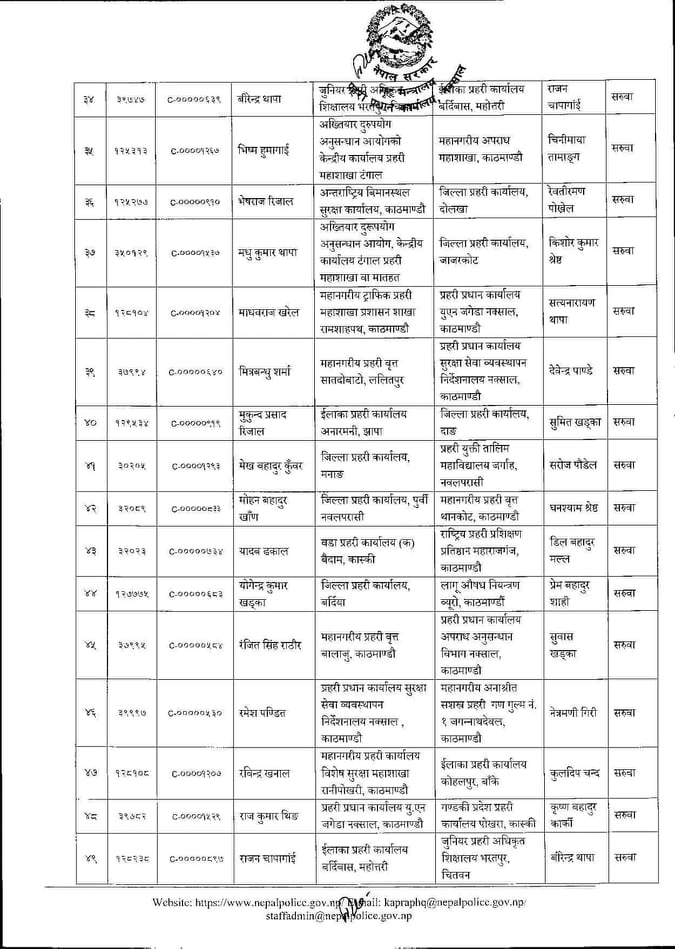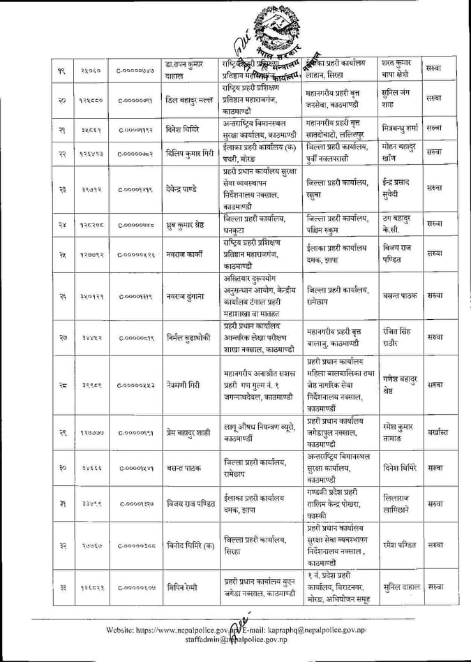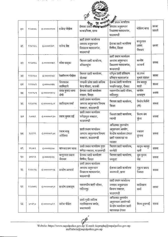मंगलबार प्रहरी महानिरीक्षक एआईजी शैलेश थापा क्षेत्रीले मंगलबार ३० जना एसपी र ६१ जना डिएसपीहरुलाई सरुवा गरेका हुन् ।