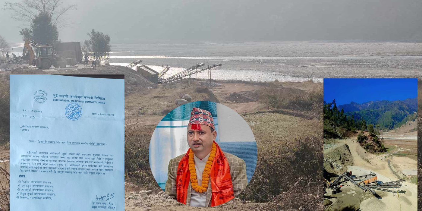 बुढीगण्डकी जलविद्युत कम्पनिले बुढिगण्डकी क्षेत्रमा संचालित क्रसर तथा बालुवा उद्योग बन्द गर्न जिल्ला प्रशासन कार्यालय धादिङ्गलाई पटक पत्राचार गर्दा पनि यो क्षेत्रको धन्दा रोकिनु त परको कुरा झनै आक्रमक रुपमा उत्खनन् भइरहेको छ । यसअघि अवैध उत्खनन् भइरहेको थाहा पाएपछि जिल्ला स्थित तत्कालिन नेपाल विद्युत प्राधिकरणको धादिङ्ग वितरण केन्द्रले लाइन जोड्न अस्विकार गरेको थियो । तर, प्राधिकरणको नेतृत्व परिवर्तन भएपछि रातारात लाइन जोडिएको छ ।