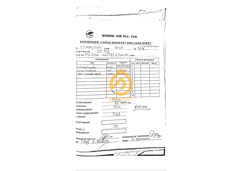 वर्षअघि अर्थात २२ मे २०२१ मा उद्दार गरिएको भनिएको कर्गो मेटिफेस्टोम विदेशी नागरिकसहित सरला नेपाल र हेमराज भाटको नाम उल्लेख छ । ती विदेशी नागरिकलाई पोखरास्थित स्वाकन अस्पतालमा सामान्य उपचार गरिएको समेत दाबी गरिएको बिल पेश गरिएको छ । तर, ती सबै दाबीहरु फर्जी रहेको उद्दारमै संलग्न स्रोतले बनायो ।