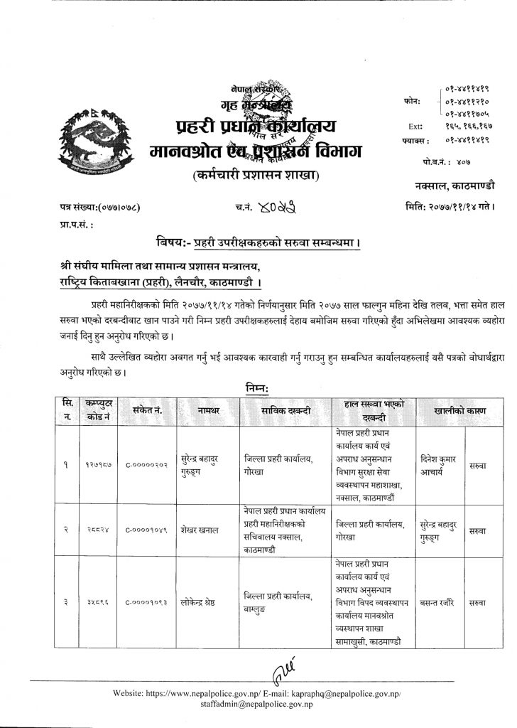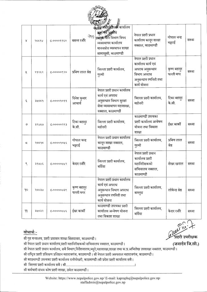 बसन्त रजौरेलाई सामाखुसी हेडक्वार्टरको कानुन शाखामा पठाइएको छ । दिनेश कुमार आचार्यलाई भने महोत्तरीको कमाण्डमा सरुवा गरिएको छ ।