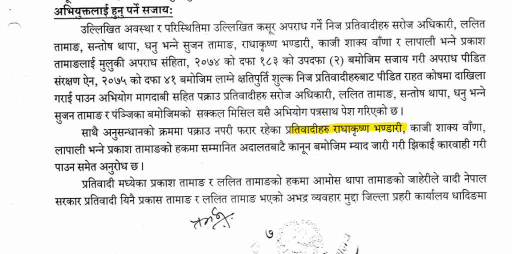 पछिल्लो समय धादिङलाई आधार बनाएर गुण्डागर्दी र अपराधमा सक्रिय राधेलाई नेपाली कांग्रेसले संरक्षण गर्दै आएको छ । उनीसहित उनको समुहका ७ सदस्य विरुद्ध जिल्ला प्रहरी कार्यालयमा २०७८ चैत्रमा ज्यान मार्ने उद्योगमा जाहेरी दर्ता भएको थियो । पीडित गंगा श्रेष्ठले दिएको जाहेरीको राधे समुहका केही सदस्य पक्राउ समेत परेका थिए । तर, उनीभने कांग्रेसकै संरक्षणमा फरार भएका थिए । जिल्ला अदालतमा २५ हजार धरौटीमा छुटेका उनलाई जिल्ला अदालत धादिङले कुटपीट मुद्दा लगाउन अन्तिम आदेश समेत दिएको थियो ।