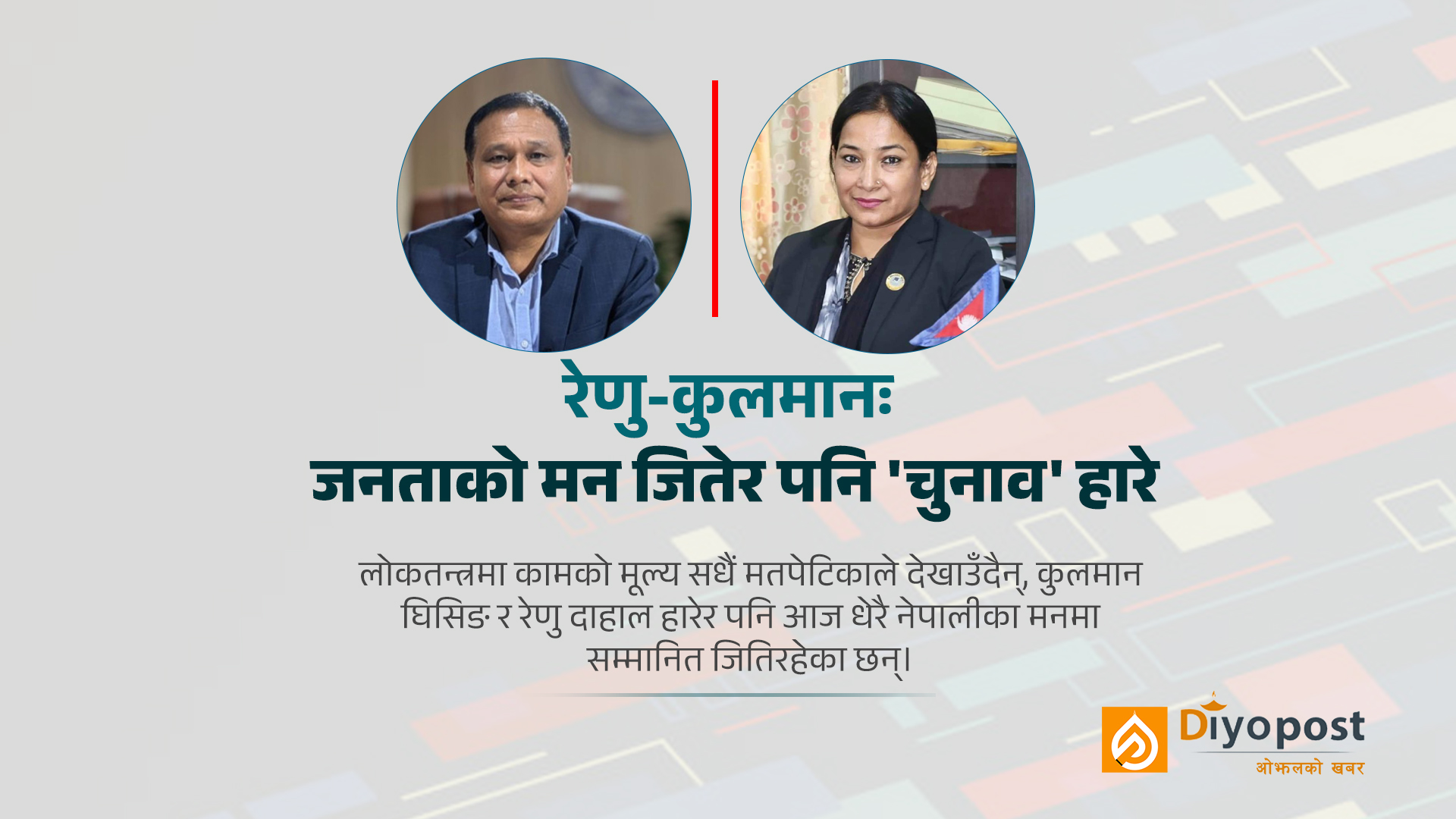 कुलमान घिसिङ र रेणु दाहालको चुनावी हार त्यही एउटा उदाहरण हो। लोकतन्त्रको सुन्दरता यही हो, यहाँ हारले पनि कहिलेकाहीँ सम्मान बोकेर आउँछ। र केही हारहरू यस्ता हुन्छन्, जसले व्यक्तिलाई मतपेटिकामा होइन, इतिहाँसमा जिताउँछन्।