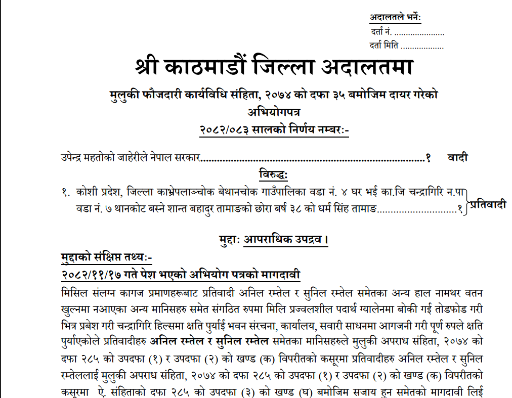 मुलुकी अपराध संहिता, २०७४ को दफा २८५ प्रयोग गरेर एक सामान्य नागरिकलाई ५ वर्ष कैद र १ अर्ब ६४ करोडको विगो भराउन खोज्नु ‘हात्तीले कमिलोलाई कुल्चनु’ जस्तै क्रूर दृश्य हो। राज्यका संयन्त्र र प्रहरी प्रशासनलाई समेत प्रभावमा पारेर एक सामान्य व्यक्तिलाई सात पुस्तासम्म ऋणको भार बोकाउने यो कृत्यले ‘डिजिटल र कर्पोरेट उपनिवेशवाद’को झझल्को दिन्छ।