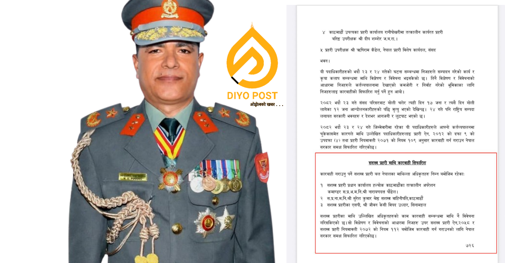 काठमाडौं । गत भदौ २३ गते भएको जेनजी पुस्ताको आन्दोलनकारी र ३ बालबालीका हत्याको गम्भिर आरोप लागेका सशस्त्र प्रहरीका तत्कालिन अतिरिक्त महानिरिक्षक नारायण प्रसाद पौडेललाई सरकारले पुरस्कृत गरेको छ । प्रधानमन्त्री बालेन्द्र शाह नेतृत्वको मन्त्रिपरिषद बैठकले उनलाई सशस्त्र प्रहरीको महानिरिक्षक नियुक्त गर्ने निर्णय गरेको हो ।