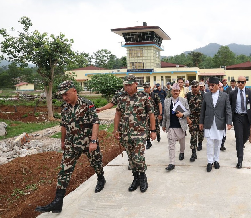 काठमाडौं । प्रधानमन्त्री पुष्पकमल दाहाल ‘प्रचण्ड’ बाढी पहिरो प्रभावित क्षेत्रको अवलोकन गर्ने सिलसिलामा संखुवासभाको तुम्लिङटार पुगेका छन् । उपप्रधान एवं गृहमन्त्री नारायणकाजी श्रेष्ठ, भौतिका पूर्वाधारमन्त्री प्रकाश ज्वाला र शहरी विकास मन्त्री सीता गुरूङ, एमाले सचिव योगेश भट्टराई, वसन्त नेम्वाङसहितको टोली उक्त स्थान पुगेको हो ।