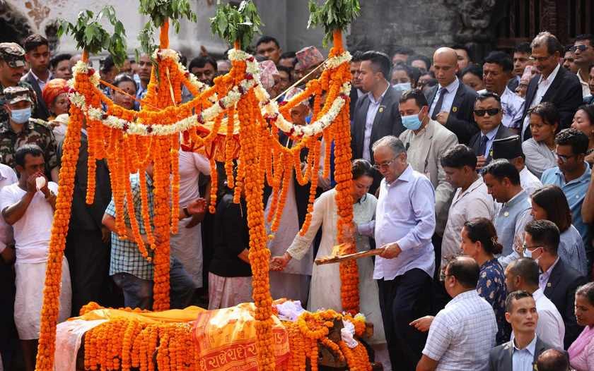 काठमाडौं । दिवंगत सीता दाहालको हिन्दु परम्परा अनुसार पशुपतिनाथ आर्यघाटमा अन्तिम संस्कार गरिएको छ । प्रधानमन्त्री पुष्पकमल दाहाल र उनका दुई छोरीहरू रेणु दाहाल र गंगा दाहालले दिउँसो साढे ३ बजे पार्थिव शरीरमा दागबत्ती दिएका छन् ।