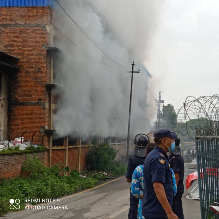 शुक्रबार राति दुई बजेदेखि नै आगलागी भएको प्रहरीले जनाएको छ । १९ वटा पानी ट्याङ्कर ९ वटा बारुणयन्त्रले आगो निभाउने प्रयास भए पनि नियन्त्रणमा आउन नसकेको प्रहरीले जनाएको छ ।
