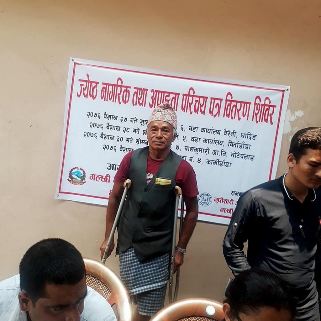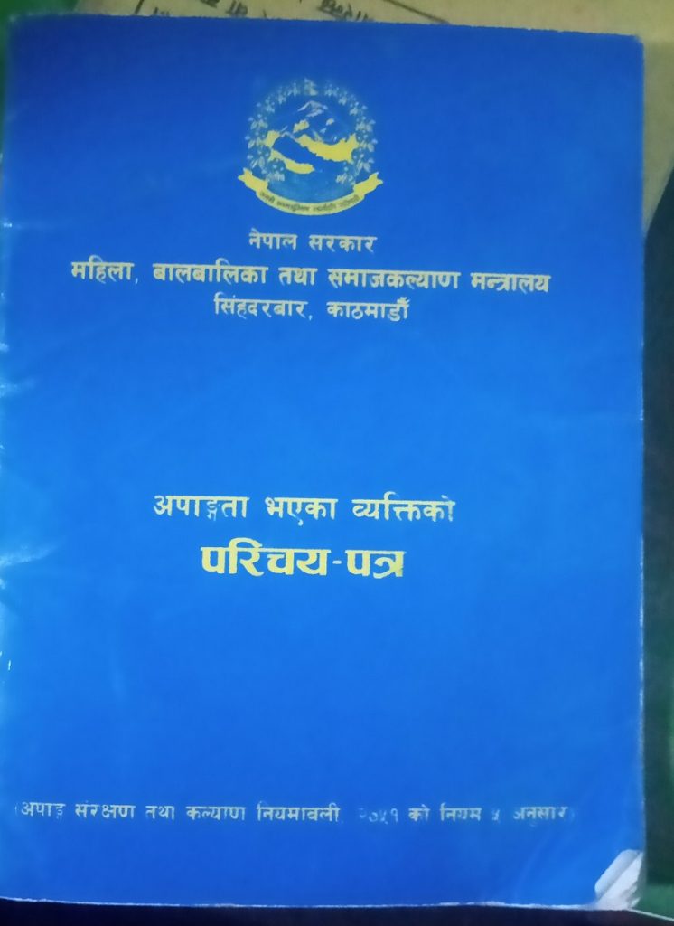 यसअघि केन्द्र सरकारले वडा नम्बर ६ निवासी राम बहादुर भूजेललाई शारीरिक अपांगता वर्गिकरण गर्दा अति असक्त अपाङ्गता परिचय पत्र अर्थात ‘खण्ड ख’को पत्र पाएका थिए । उनले सोही निलो परिचय पत्रको आधारमा नियमित भत्ता बुझेर आफ्नो गुजारा चलाउँदै आएका थिए ।