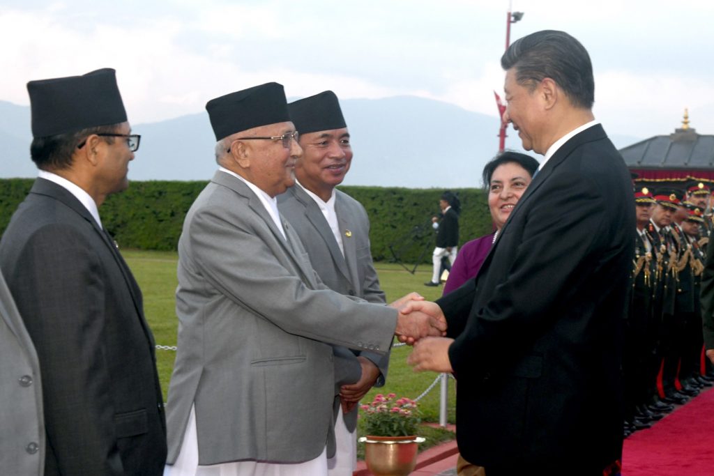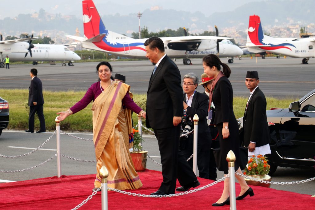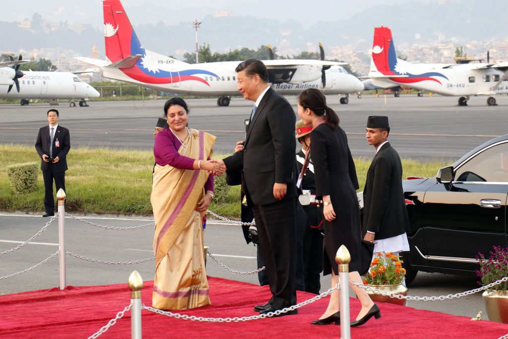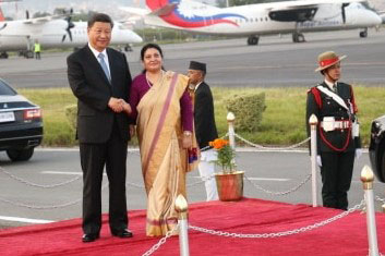 काठमाडौँ, असोज २५ । चिनियाँ राष्ट्रपति सी जिनपिङलाई त्रिभुवन विमानस्थलमा भव्य स्वागत गरिएको छ । उनको स्वागतका लागि राष्ट्रपति विद्यादेवि भण्डारी नै विमानस्थल पुगेकी थिईन् ।