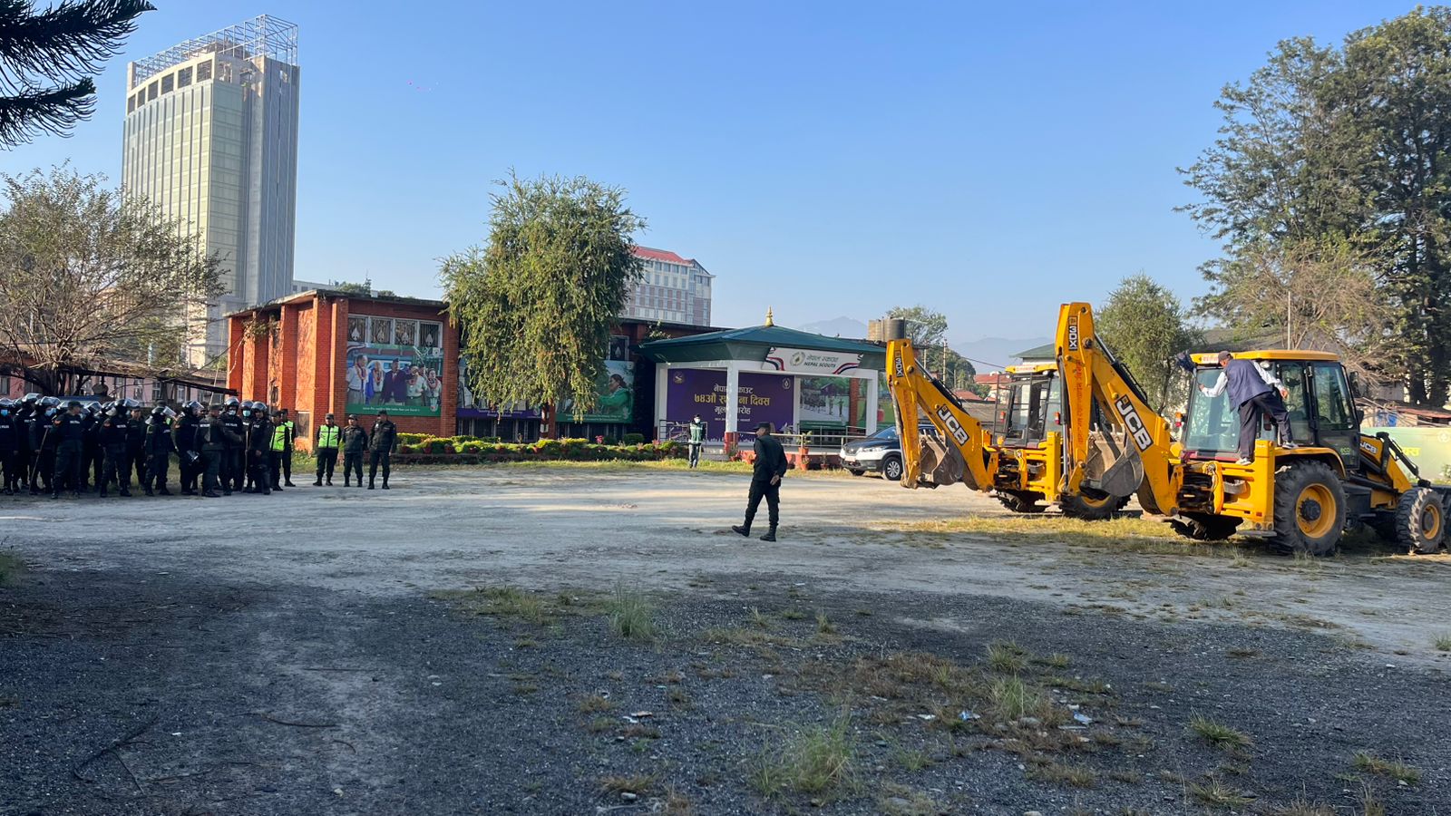 काठमाडौँ । लैनचौरस्थित नेपाल स्काउटको जग्गामा बनाइएका संरचनामाथि काठमाडौं महानगरपालिकाले डोजर चलाएको छ। पूर्व उर्जामन्त्री समेत रहेका नेपाली कांग्रेसका नेता दिपक खड्काले स्काउटको जग्गामा निर्माण गरेका अबैध संरचनामाथि महानगरले बिहबार डोजर चलाएको हो ।