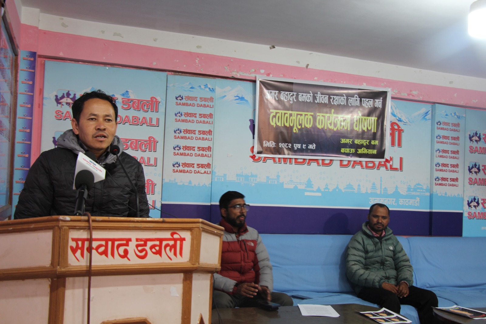 पत्रकार सम्मेलनमा अभियानका प्रतिनिधिहरूले अमरबहादुर बम कुनै अपराधी नभई रोजगारीका लागि विदेश पुगेका एक गरिब नेपाली नागरिक भएको दाबी गरे।