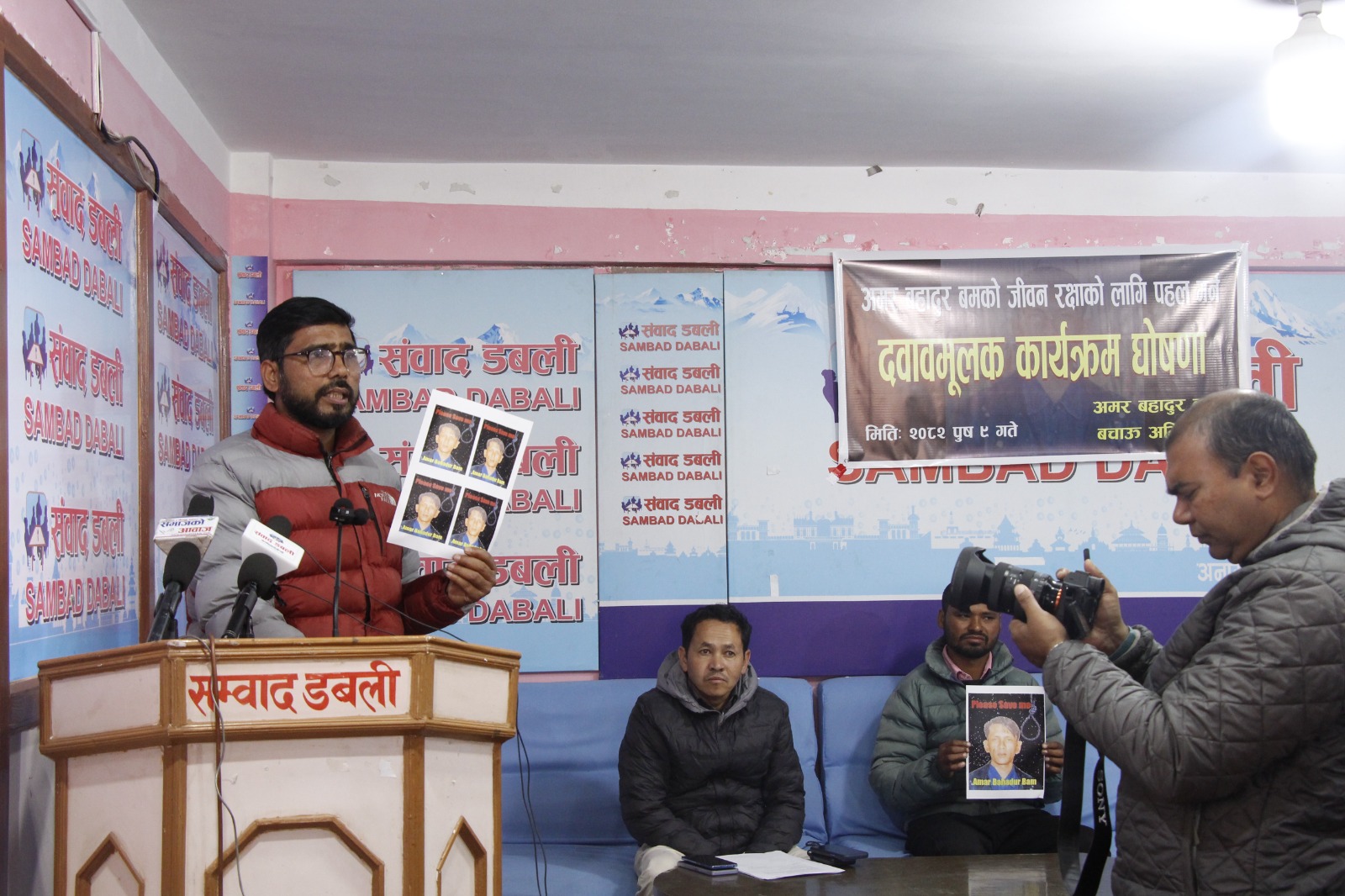 काठमाडौं । दुबई अदालतबाट मृत्युदण्डको फैसला सुनाइएका दार्चुलाका अमरबहादुर बमको जीवनरक्षाका लागि ‘अमरबहादुर बम बचाउ अभियान’ सुरु गरिएको छ। नेपाल सरकारको ध्यानाकर्षण गराउँदै बमको रिहाइका लागि कूटनीतिक पहल गर्न दबाब दिने उद्देश्यले देशव्यापी अभियान सुरु गरिएको हो।